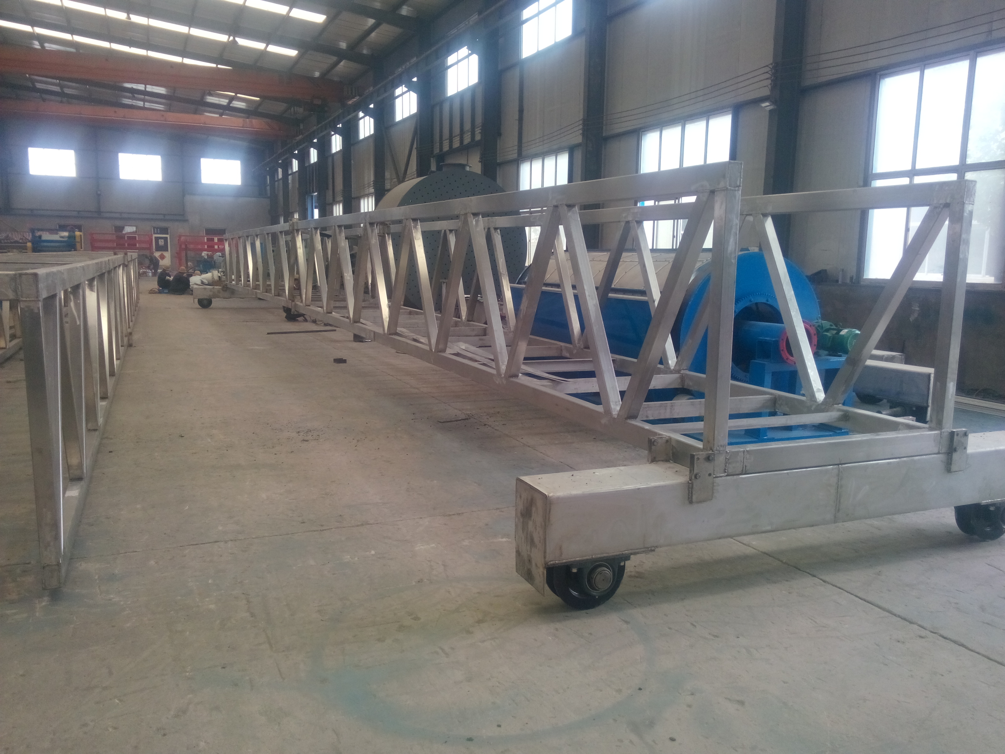 刮泥機與行走電機運行中各司其職,互不干涉,刮泥機底部配有水下行走輪結構,從而保證運行中的平穩,兩個行走電機采用同步電機,從而保證了兩邊的行走一致平穩。