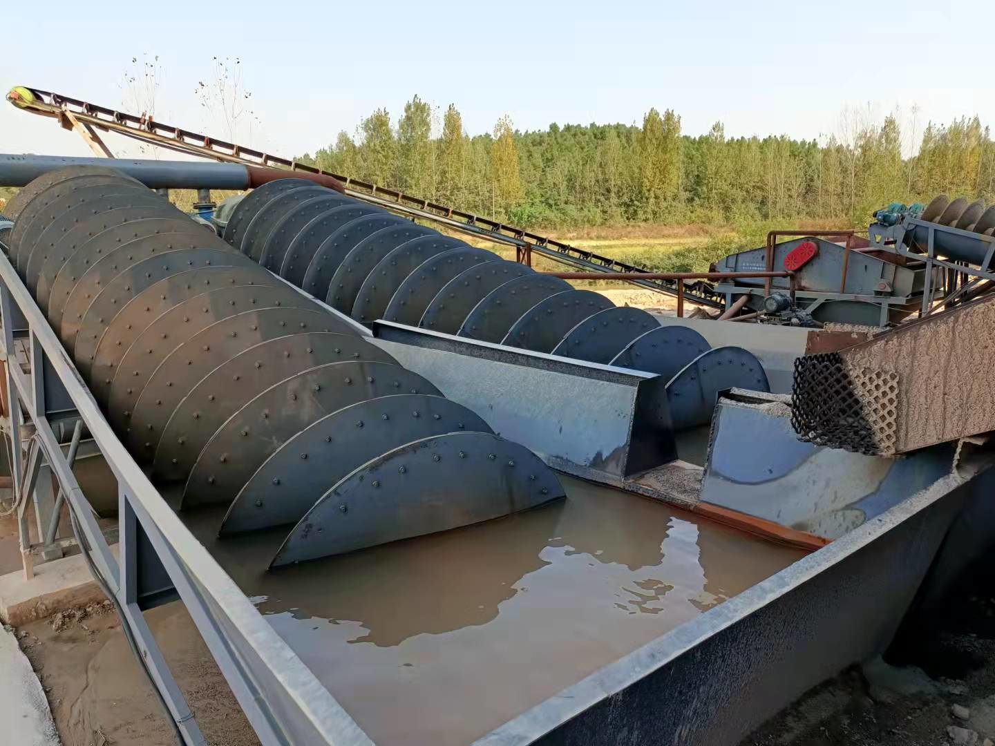 步驟二中的混合物通過螺旋洗砂機進行分離處理,并將細砂和細泥的混合物通過回收箱進行收納處理。