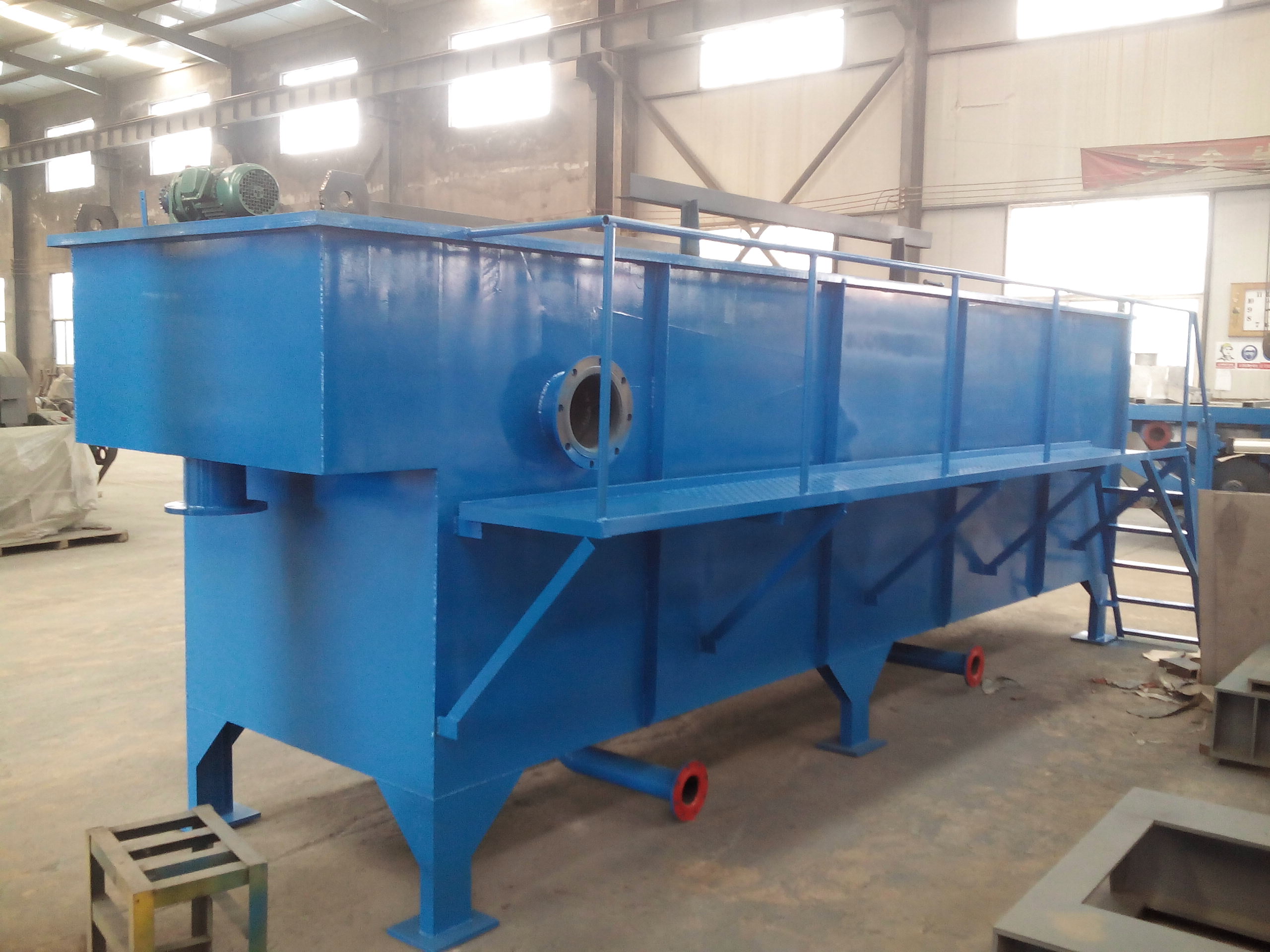 屠宰廢水處理工藝。多采用物理法,生化法。物理法有格柵攔截,隔油池,混凝沉淀,氣浮法。經格柵攔截,隔油池,混凝沉淀,氣浮后,廢水中主要的漂浮物,如肉屑顆粒,懸浮物,膠體物質,油脂類得到較充分的去除。