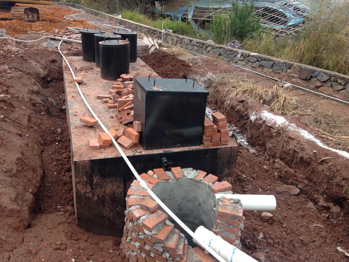 (3)三級處理:好氧處理后的出水溢流進入沉淀池。沉淀后的上清水進入消毒池。沉淀池中的污泥用渣漿泵定期泵入污泥濃縮池。